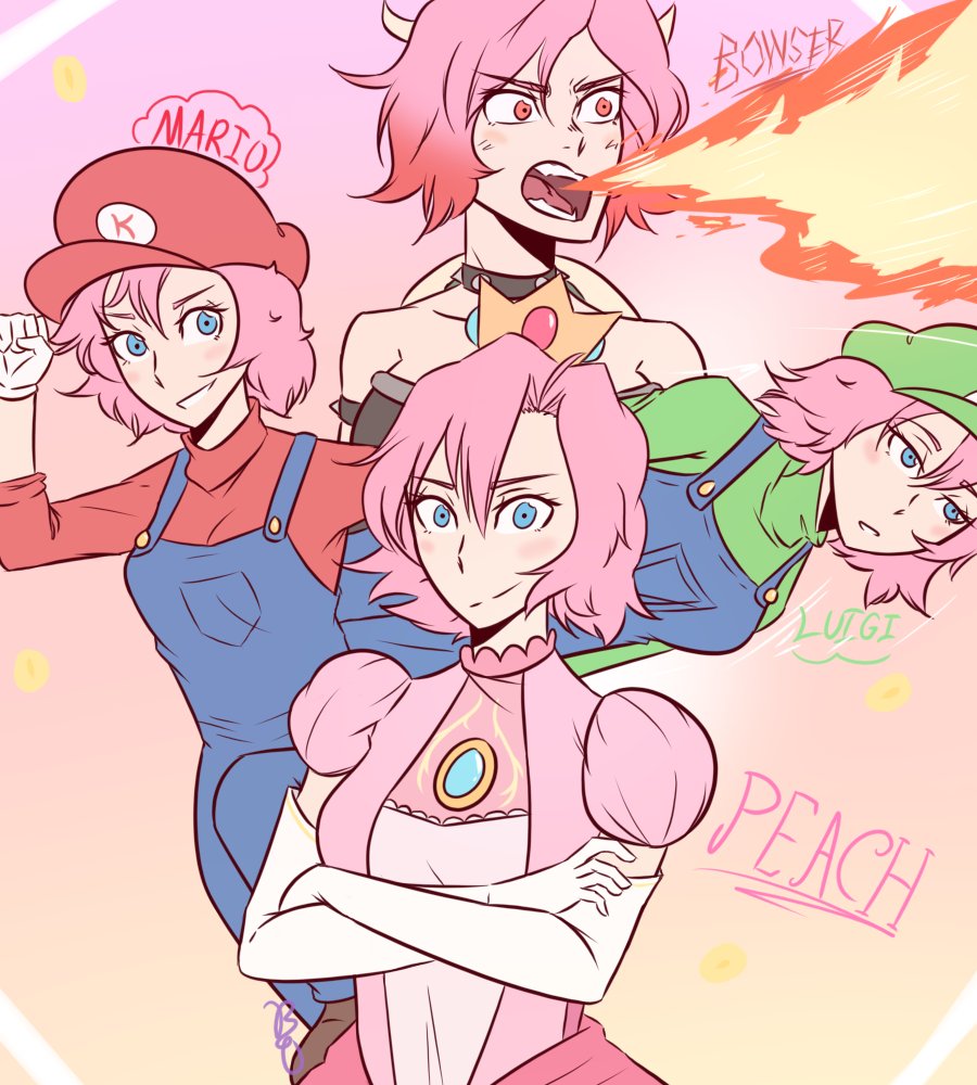 This time I drew four Smash Bros copy abilities for @kirbyotaku! Hope you enjoy Kirby with Mario, Luigi, Bowser, and Peach's powers! #cutiesaturday