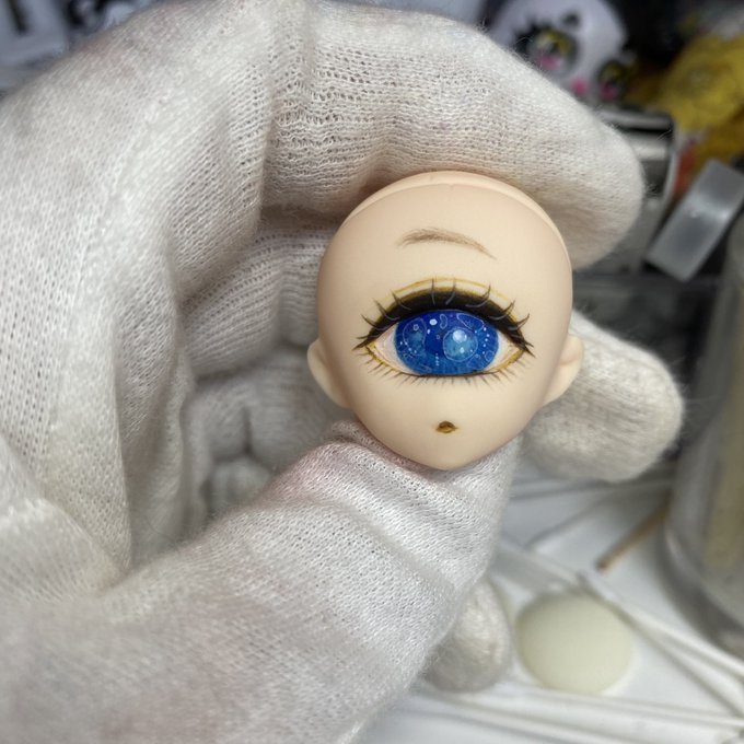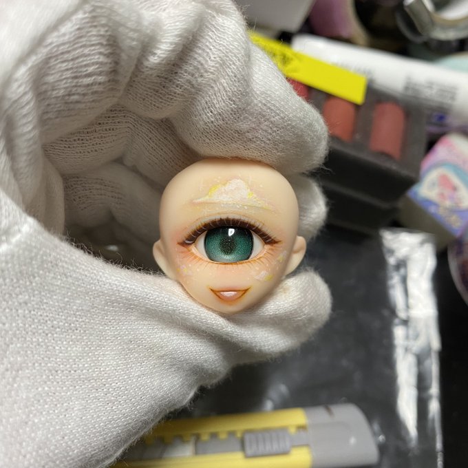 1 13 #毎月1日は単眼の日 久々の参加でパラボックルヘッドをペイントしました✨ キラキラと輝く空の雲をイメージしました😊✨ #単眼ドール #単眼 21/07/01 19:17