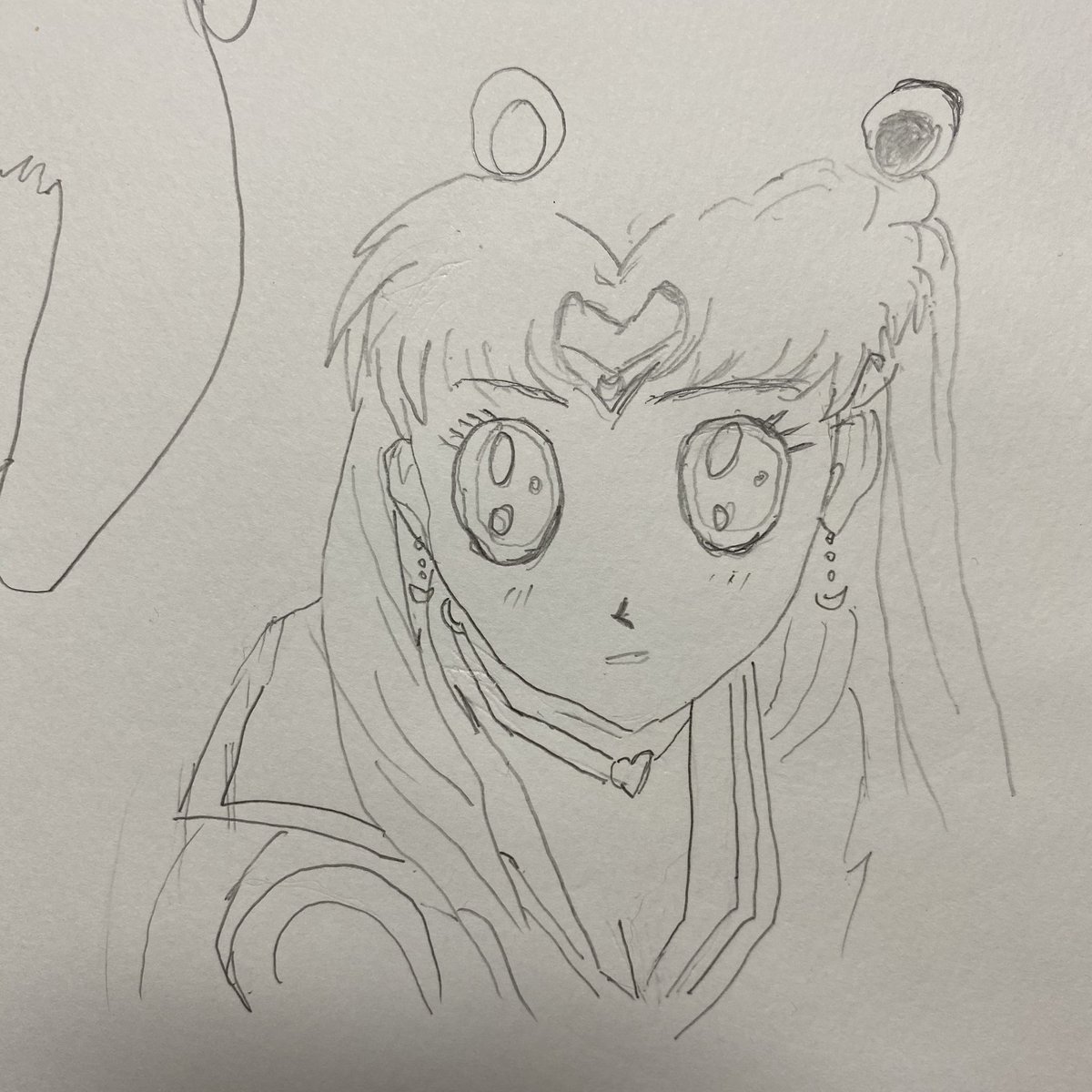 1枚目は伴侶が20秒で描いたセーラームーン 2枚目は伴侶が真面目に描いたセーラームーン🌙✨ なかなか上手く描けてる!! #sailormoonredraw