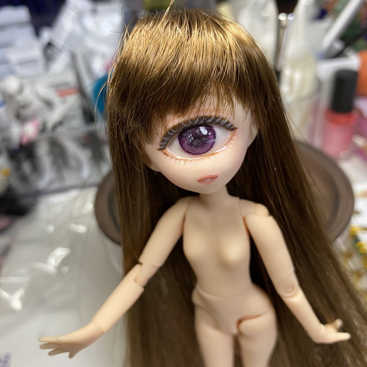 瞳に艶出ししてみた。塗りすぎてうるうる。 #ゆりカム #単眼ドール #単眼ちゃん #パラボックス