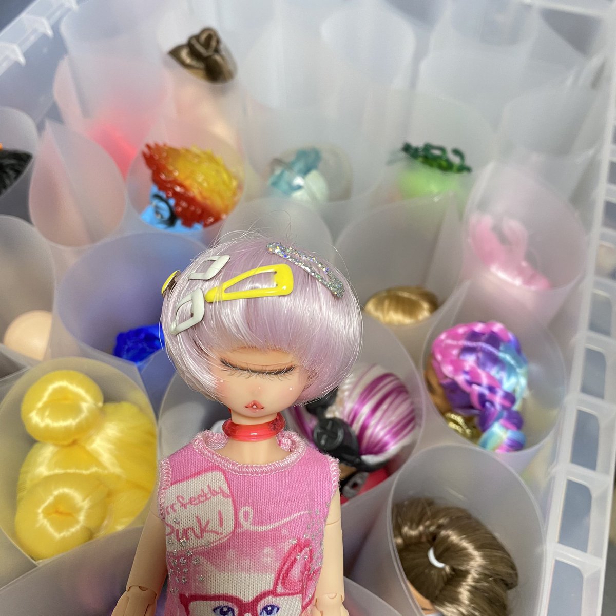 0 2 飾ってあったドールを全部一度ケースに片付けてます。 作業部屋で使ってたタンスを自宅に運ばないといけないので、、、🥲しんどい。 #単眼ドール #ゆりカム 21/03/27 12:35