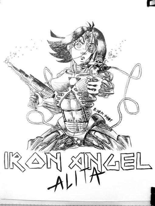 Reminder that Eddy is canon in the Gunnm universe :] I also had this idea for a long time XD Oh yeah... dishonor and shit :P #fanart #Alita #AlitaBattleAngel #IronMaiden #inktober2020 #Inktober #inktoberday29
