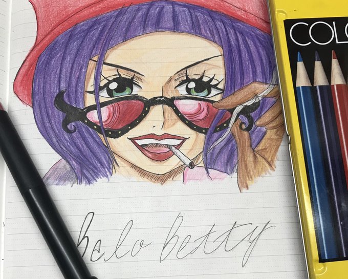 3 26 めっちゃ遅くなった〜💦 @Kinako_mottyan さんのリクエスト ベロ・ベティ様!! 下手くそでごめんなさい💦 #模写 #色鉛筆画 #ワンピース 19/05/25 20:26