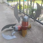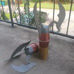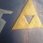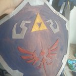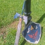 Working on my revamped Master Sword and Hylian Shield for my Link cosplays, I decided to sand down the sides to make the blade look better and I gave both cuts and dents, as well as metallic bronze wash to make them look dirty. #Legendofzelda #WorkinProgress #cosplay