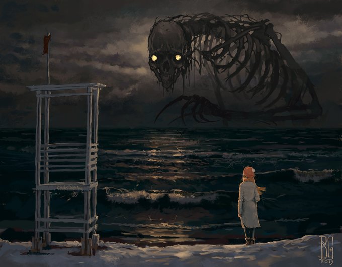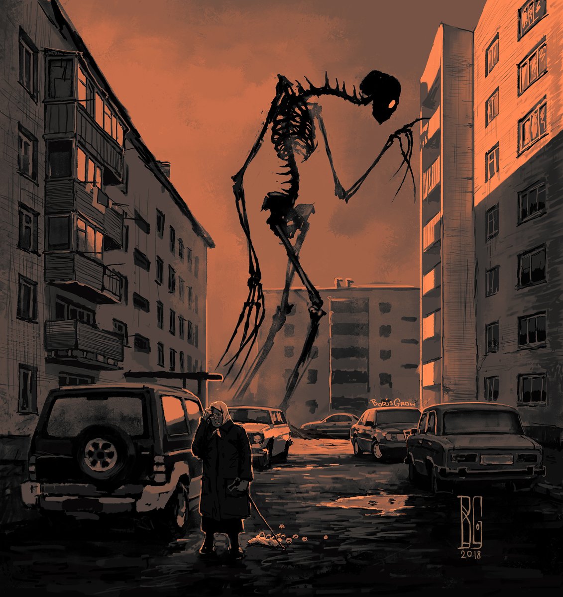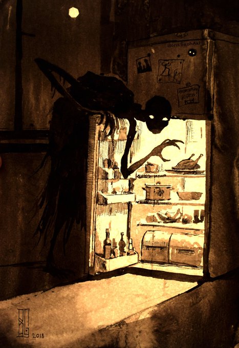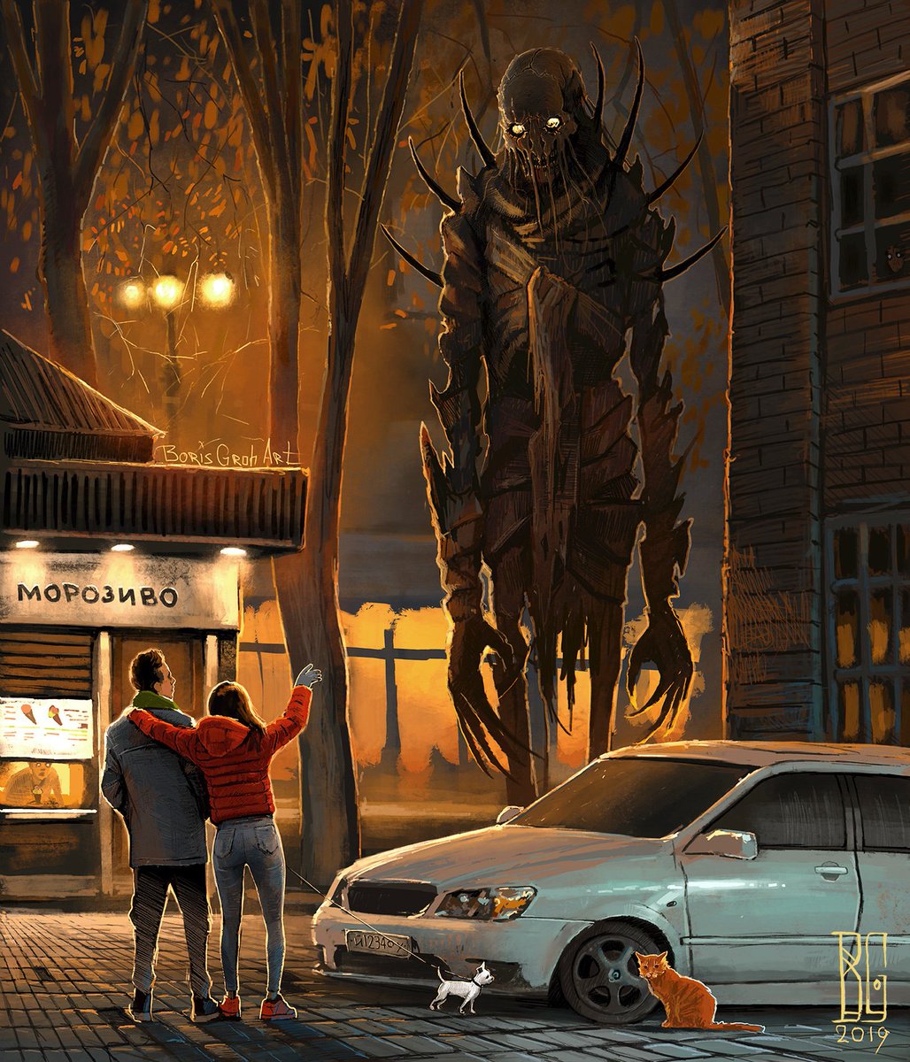 "Our lovely neighbor" 2023 New artwork. Available on Artstation prints, link in bio. It is digital, but would you like to see it as an oil painting? #art #digital #horror #neighbors #creepy #borisgroh