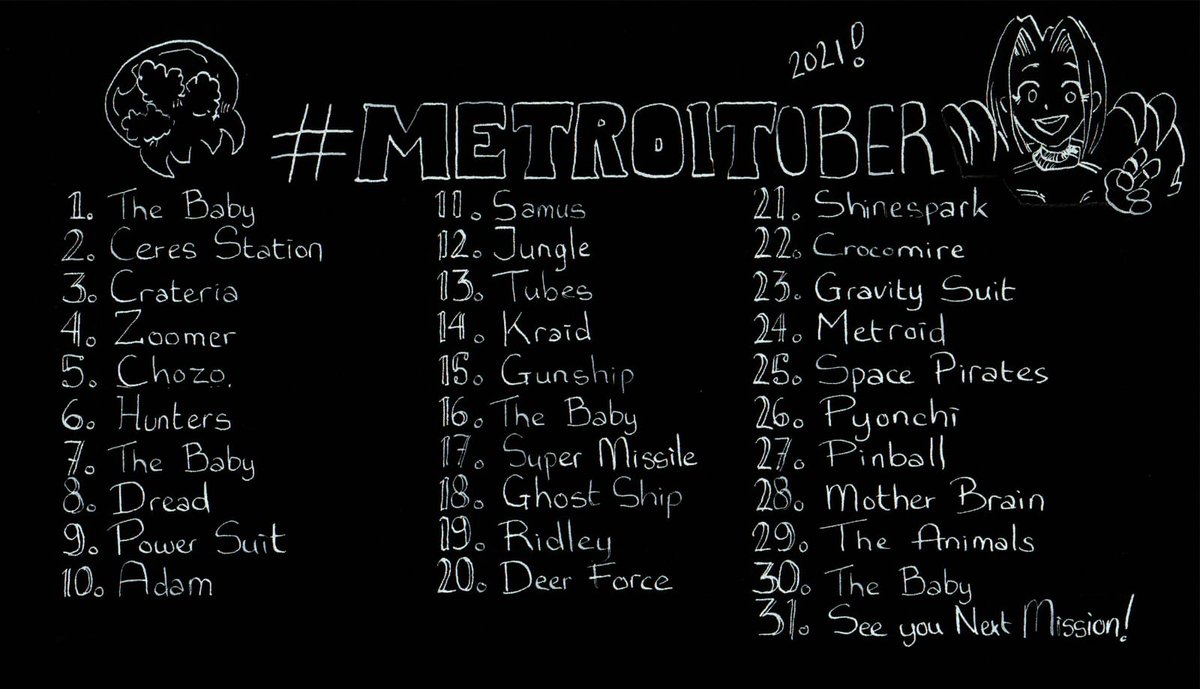 #Metroitober Days... 22: Crocomire 23: Gravity Suit 24: Metroid 25: Space Pirates #Metroid #inktober