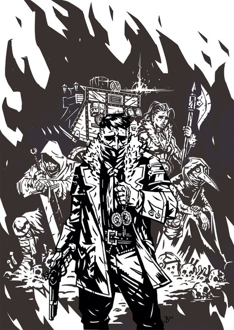 pls enjoy this BW version of the @DarkestDungeon @pcgamer cover! Was truly an honor to have been able to do this - thanks PCG! #darkestdungeon2