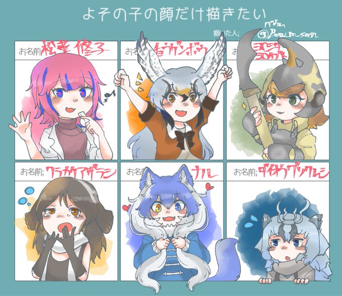 タグのやつ〜〜〜〜〜〜〜!!!! よその子お借りさせて頂きありがとうございましたーーーー!!!!楽しかった!!!! #よその子の顔だけ描きたい