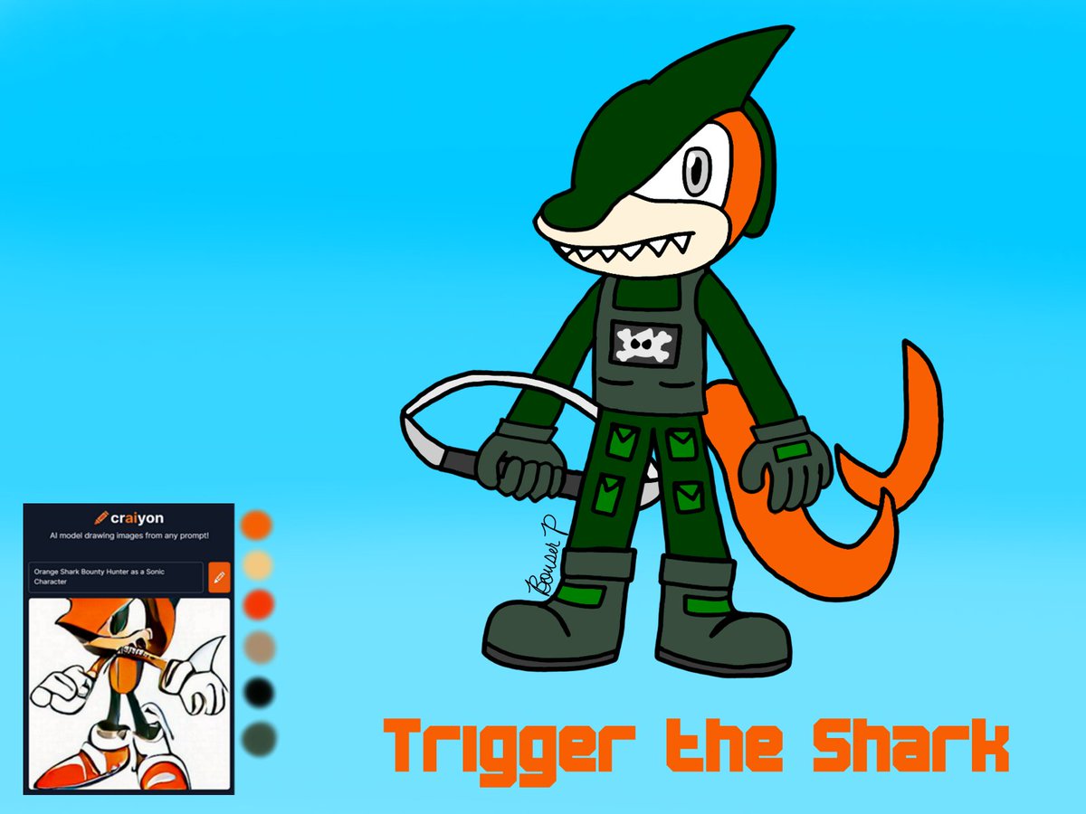 #Inktober2022 "AI Sonic OCs Edition" Day 19 I like sharks, I like bounty hunters (conceptually anyway), why not put them together. The result gave me an interesting idea for a helmet so I ran with it. Meet Trigger the Shark. Hope you like it