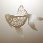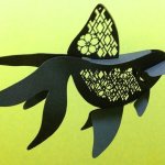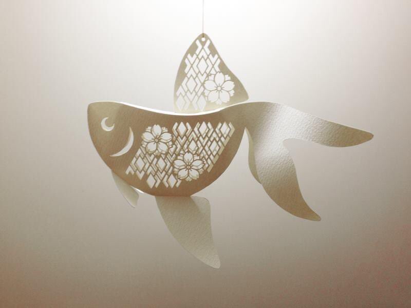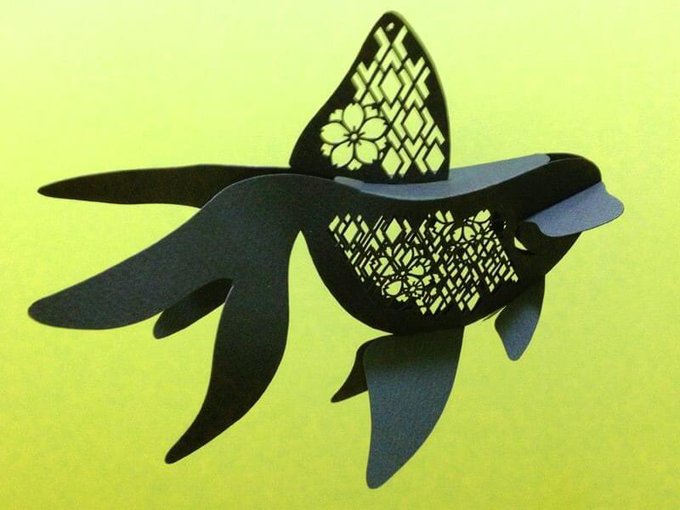 もう桜の季節がそこまで来てますね。 八重山桜と菱模様の金魚オーナメント。 白が琉金、黒がでめきんイメージになってます。 カット済み¥2,500(税・送料別) 通販→goo.gl/cN22Kx 影が出来るところに飾ると美しいんです。 電球はクリアのLED電球がおすすめ。(陰がクッキリでます)