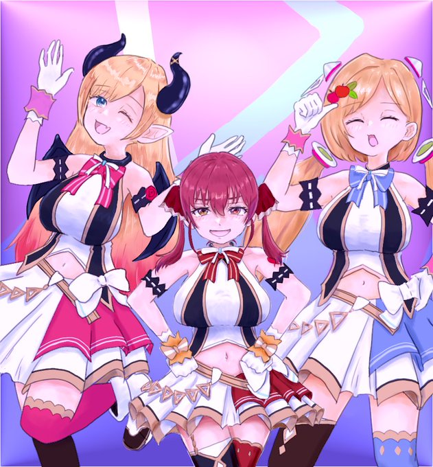 27 110 昭和歌謡祭でツインタワーに挟まれてるマリン船長、ちんちくりん増し増しでめちゃ可愛かった #マリンのお宝 #アロ絵 #しょこらーと 22/11/20 12:20