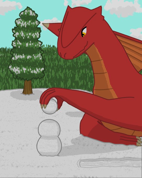 A dragon taking a break from fighting adventurers to build a snowman. Drawn as part of @discord's Snowsgiving art competition. Happy holidays! #snowsgiving #digitalart #Discord #DnD #dndart #art
