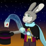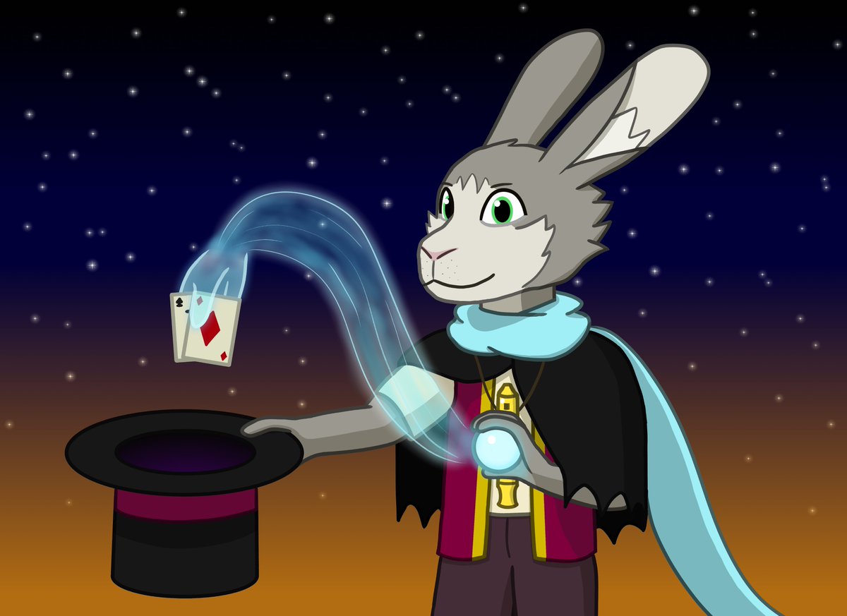 Sarlen Vol, Harengon Warlock of the Archfey. Performer and magician at your service. #dndart #DnD #digitalart #characterdesign #characterart #art