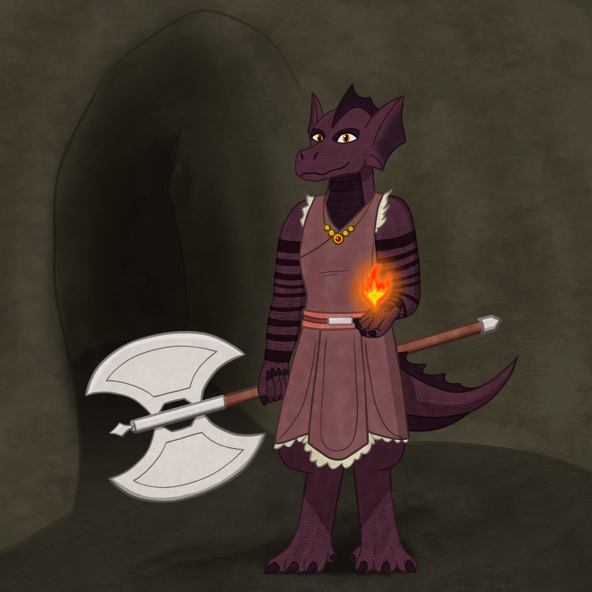 #Artfight2022 attack on @MyPetChickenz! Lizardfolk barbarian Aryn is enjoying her new magical amulet. #dndart #dnd #teamwither