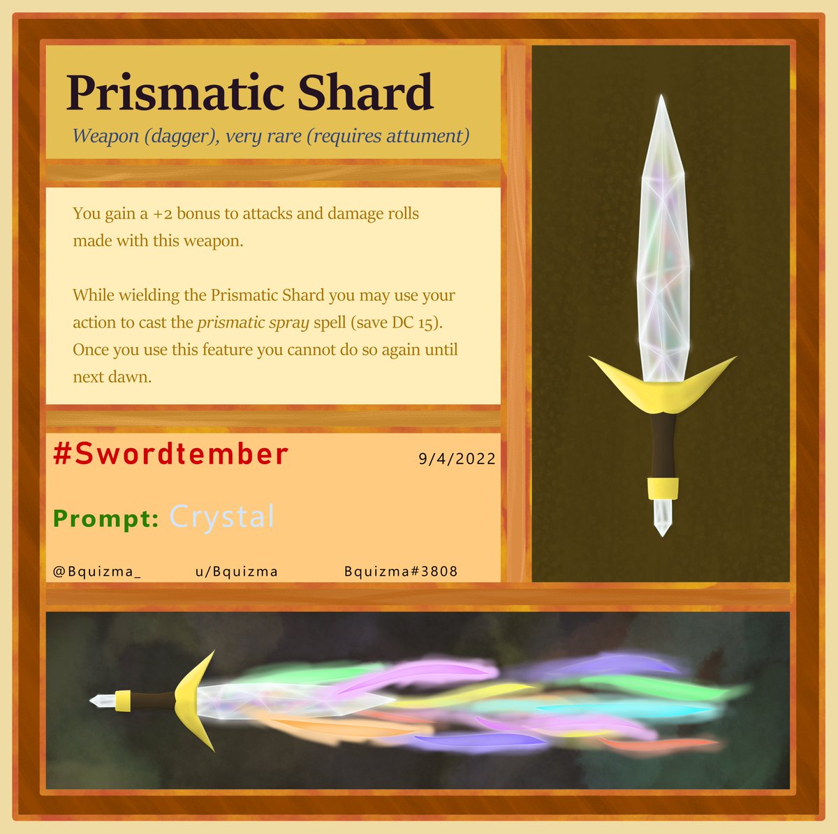 Wanted to participate in #swordtember this year and had an idea to give the drawing some D&D 5e stats as well. Prompt: Crystal Thanks to @randomspirits for the prompts #swordtember2022 #dnd #digitalart