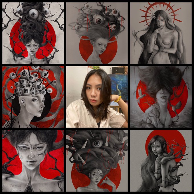 Me Vs My art works 🤣 Gonna start painting my new piece today and I will drop on the next few day. Please stay tune!!! ❤️ #NFTs #NFTartists #NFTCommunity #NFTTHAILAND