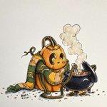 Day 18 of #jackolantober - potion, soup, and knitted scarf! #bamillustration #spooktober2020 #berry2020 #inktober2020 #copicmarkers #traditionalart