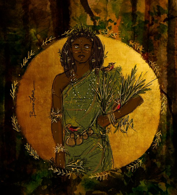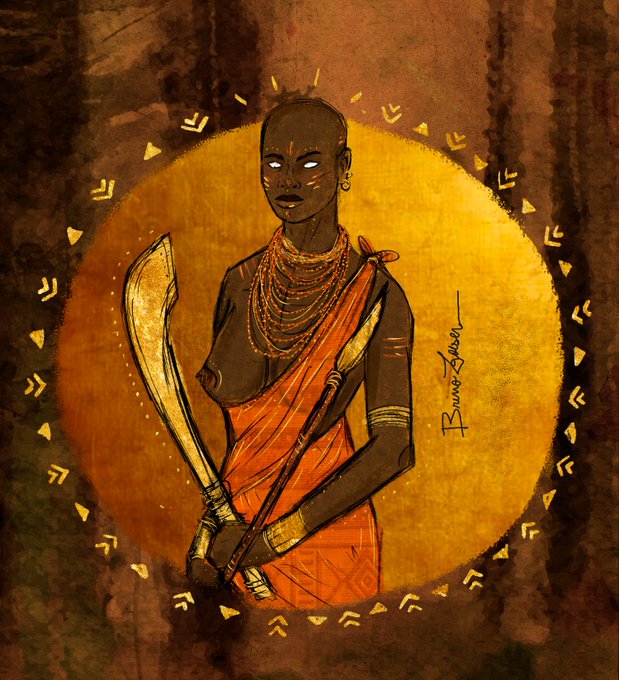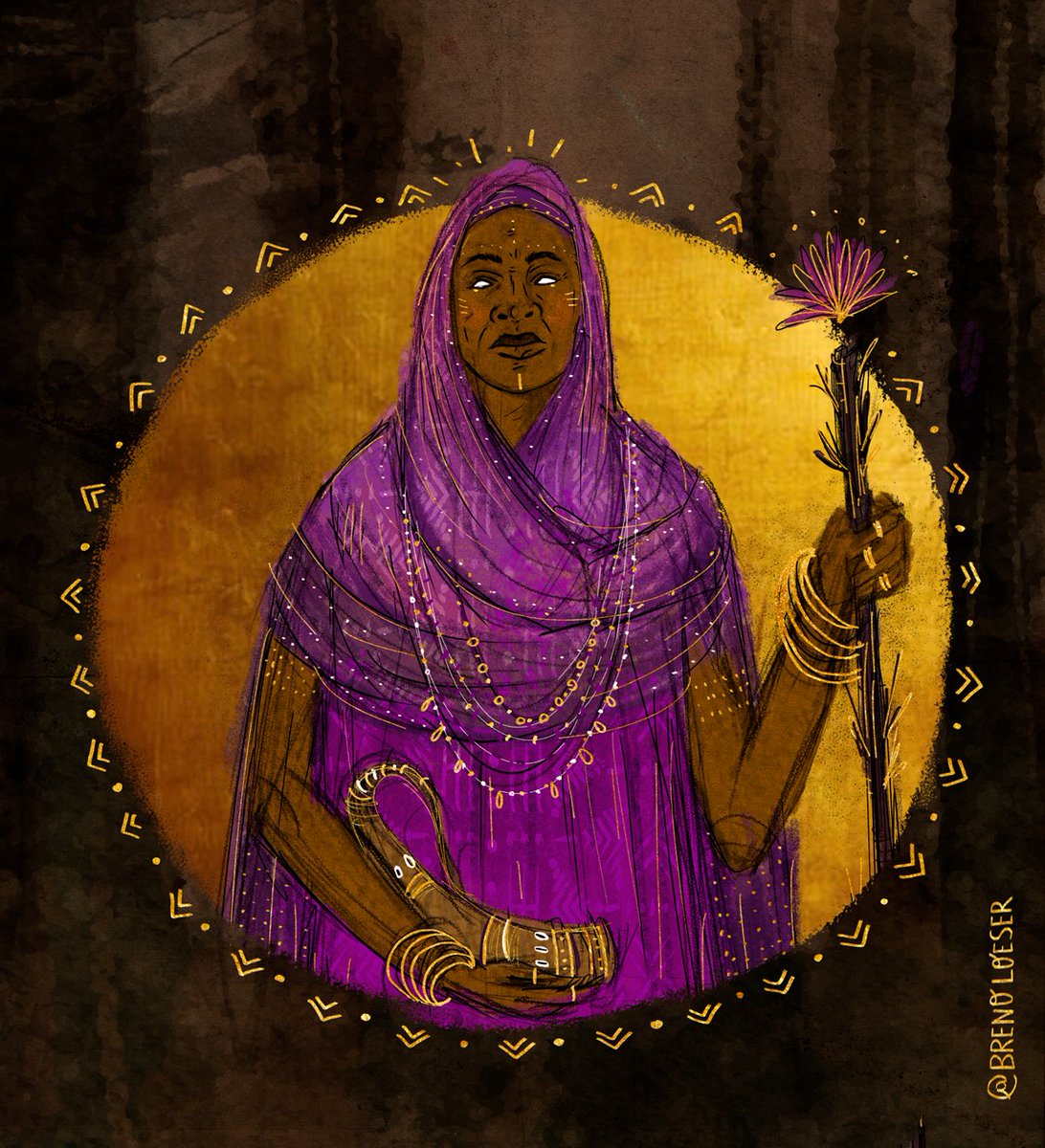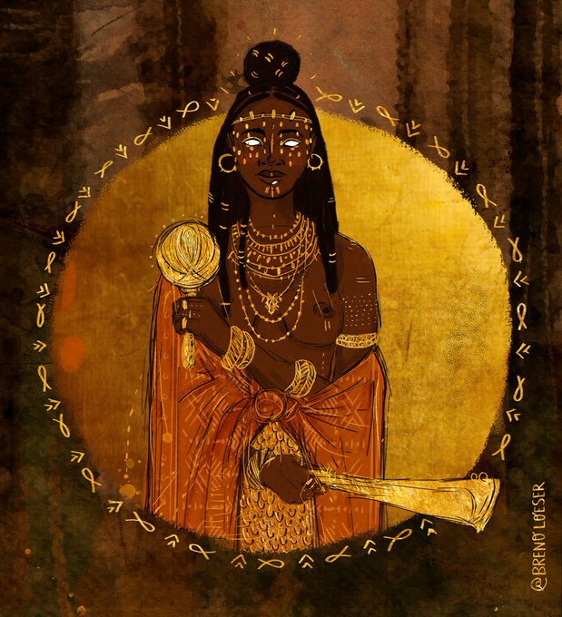 Inktober nº 13 | Obà é uma Ìyá-Agbà (Mãe Anciã ou Mãe Idosa e Respeitável) calma, complacente, tolerante, dedicada, bondosa, generosa e maternal. Inktober proposto por @DracoImagem #Obá#Inktober#Art#Orixa#Orisha#DigitalPainting
