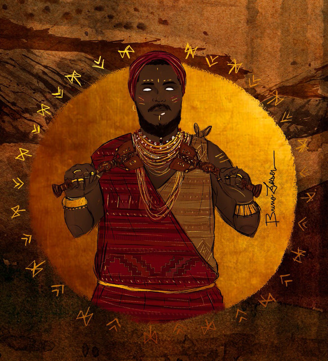 Inktober nº 3: Ògún foi escolhido por Elédùnmarè para abrir caminho à civilização, Ògún, forte e poderoso, é o herói civilizador: trabalha sobre a natureza do ferro, do fogo e da tecnologia. Inktober proposto por @DracoImagem #Ogun#Ogum#Inktober#Art#Orixa#Orisha