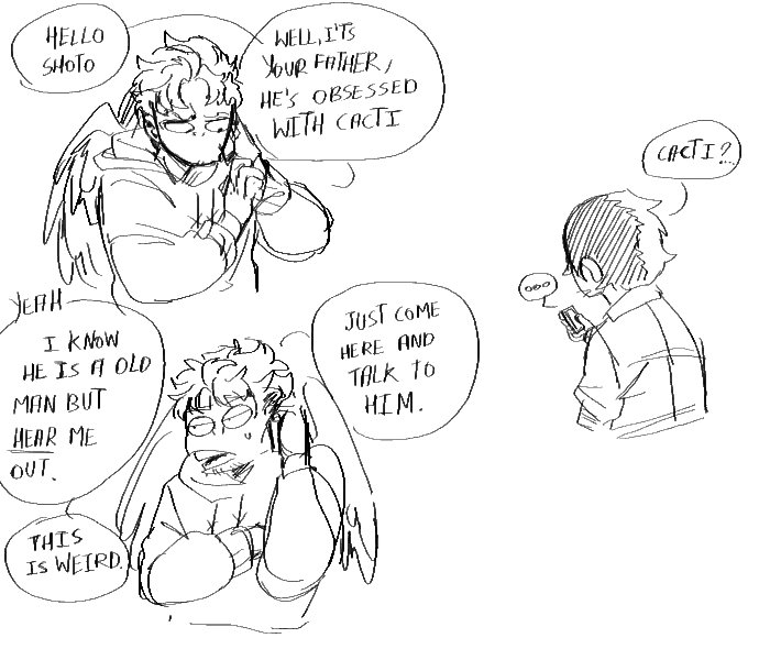 More drawings from my headcanon cactus caretaker Enji. I'm thinking of doing a mini comic about this headcanon, would that be a good idea? #endhawks #flamewings #ShotoTodoroki
