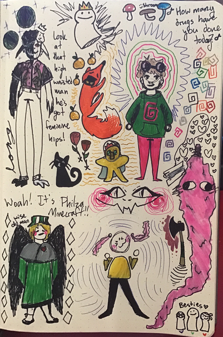 another sketch page cause the karl art is stressing me OUTTT but for now heres my brain going brrr also some of the stuff is subtle,, like,, really subtle and small,, #philzafanart #ranboofanart #fundyfanart #karljacobsfanart #dreamteamfanart #foolishfanart #hannahxxrosefanart