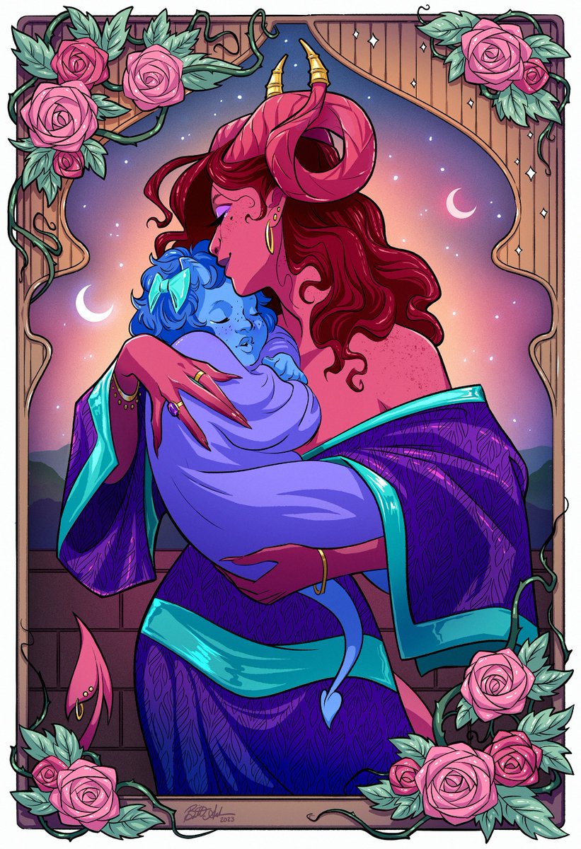 “I’ll love you forever, I’ll like you for always, as long as I’m living my baby you’ll be.” 💙❤️Marion Levorre and her little sapphire from @CriticalRole as played by @matthewmercer and @LauraBaileyVO #CriticalRole #CriticalRoleArt #fanart #dnd