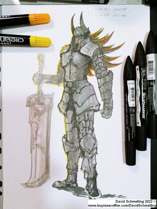 The Steel Cowboy and the Forlorn Knight. My tribute to Jack Irons, in which my OC Wan supports him in a crossover drawing against a sinister summoner. Sketch was from 2018, might edit the inking digitally, but for now it is done. Inks on bristol. @cowboy_steel #inktober2021