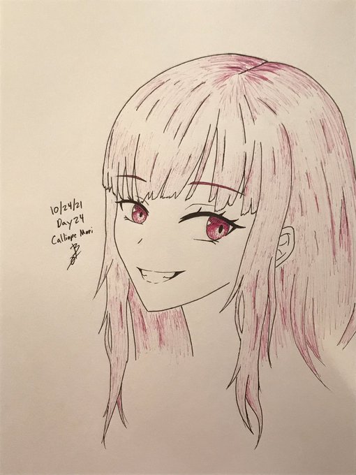 Day 24, Calliope Mori, from Hololive English. “Hey, thanks for saving my life” #inktober #inktober2021 #inktober2021day24 #hololive #hololiveEnglish #hololiveart #hololivefanart #callillust