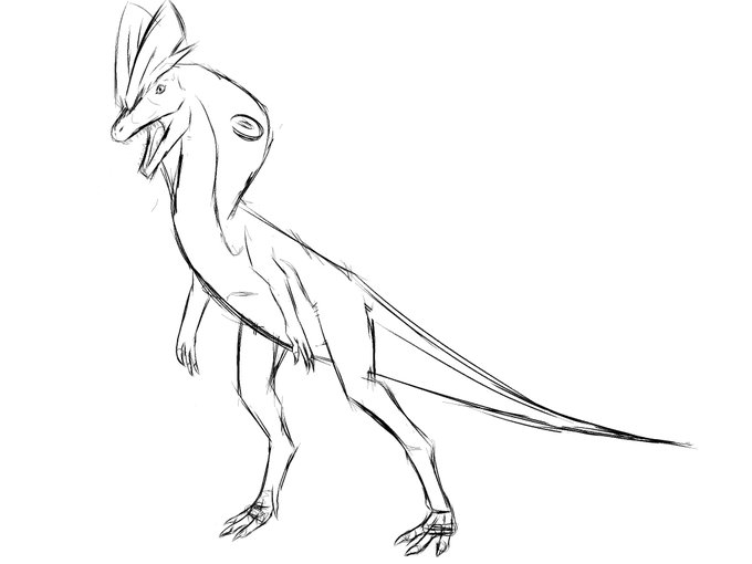 Random sketch of a Dilophasaurus with speculative cobra hood cuz why not :p #ArtistOnTwitter #dinosaur #creaturedesign #paleoart