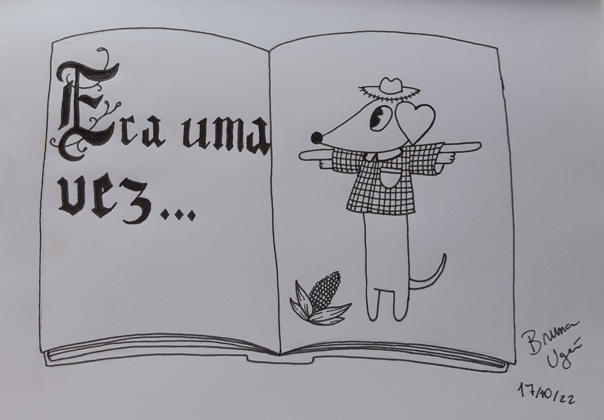 Juntei os dias 9 e dia 10 do #beamkitober Livro + Cachorro espantalho (que tinha que ser a Lua de novo) Atrasada em uma semana, mas tamo indo 🤓 #inktober2022