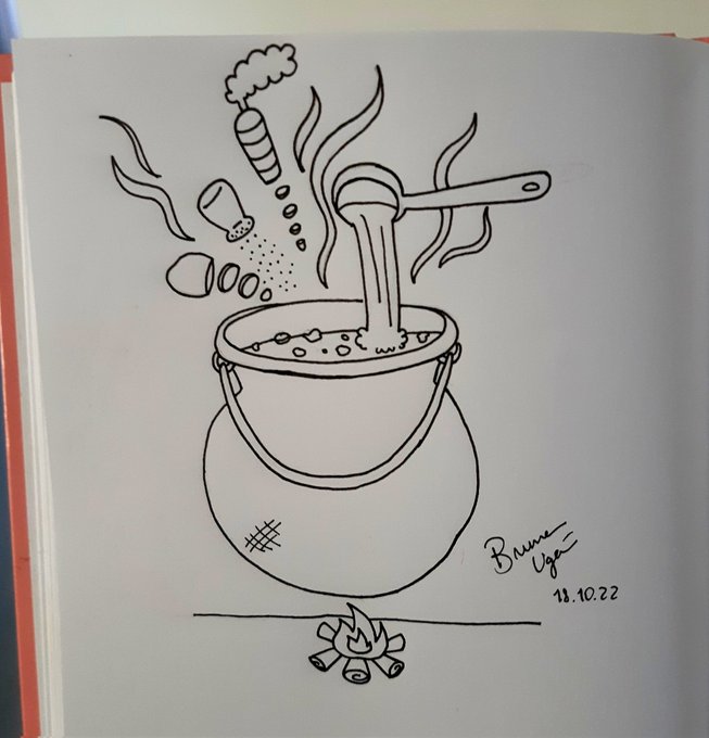 Eu sempre fascinada pela cozinha na casa dos Weasley funcionando por conta própria #beamkitober #inktober2022 Dia 12: caldeirão