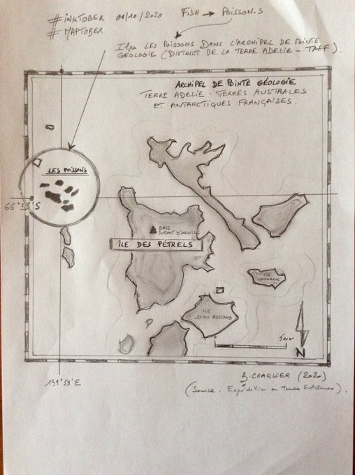 #inktober2020 #maptober2020 😉01/10/2020 : FISH Bon je me lance mais je ne vais pas tenir le mois... Fish = poisson.s = îles Les Poissons dans les #TAAF en Terre Adélie et plus précisément dans l'archipel de Pointe Géologie