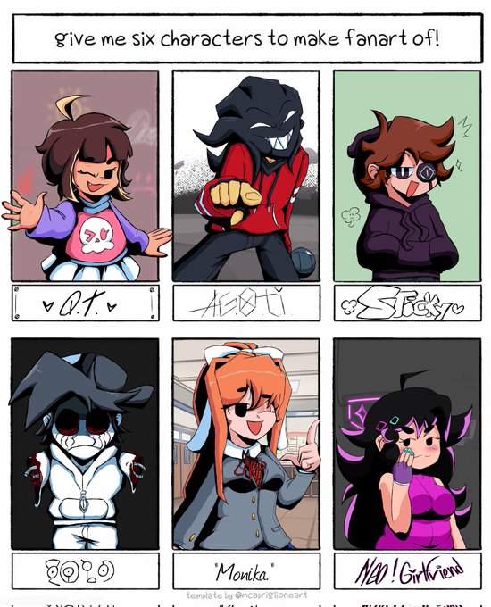 (I forgot to put this one lol) SIX FANARTS CHALLENGE! 🎨 (With HD style from Kenny) FNF HD from @KOLCHAN8 QT from @Hazard248 A.G.O.T.I from @SugarRatio Sticky from @StickyBM Gold from @Banbuds Monika from @SirDusterBuster Neo!GF from @JellyFishEdm #SixFanarts #FNF