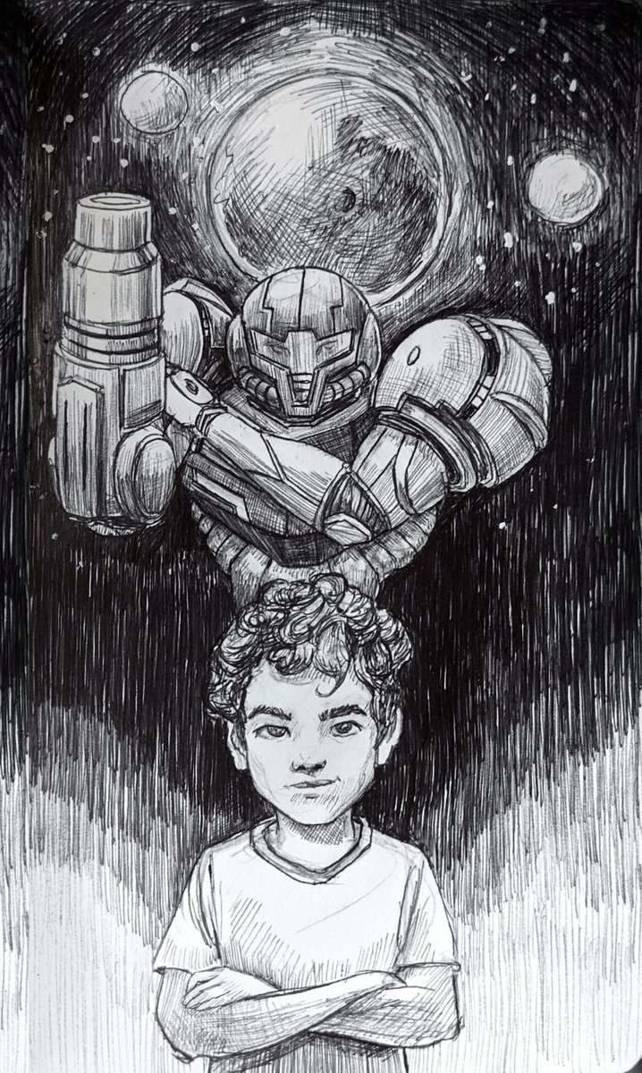 My daughter is going to her friends birthday tomorrow who is always excited to show me his Samus drawings. So we bought him a moleskin and I drew this on the first page for him. Hopefully he enjoys it. #metroid #inktober2021