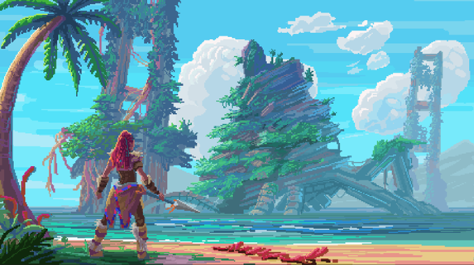 current wip will get it polished and animated for launch next week #pixelart #HorizonForbiddenWest
