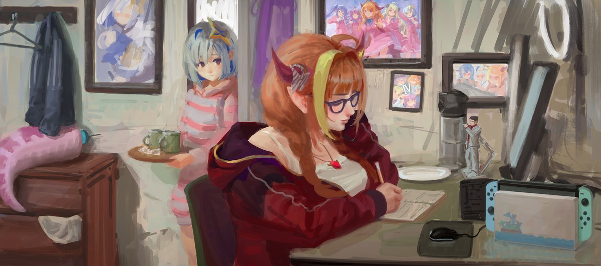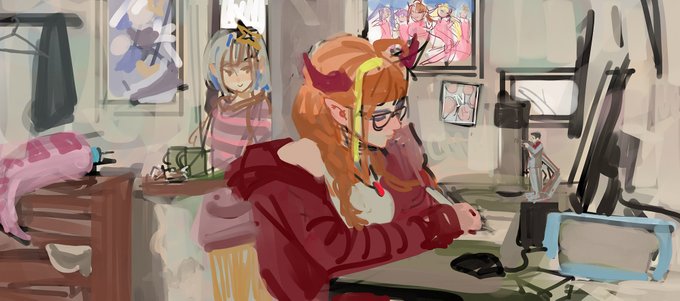 #みかじ絵 #kiryucocofanart #kiryucoco #cocokiryu #hololivefanart wip of coco and kanata, any suggestion welcome!