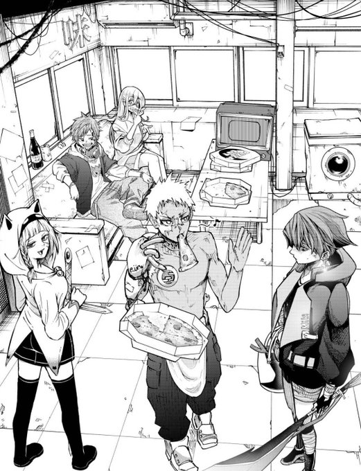 4 19 スタジオメンバーとお絵描き! テーマは悪の組織の基地! 私は右下ネコ耳の子だけ描かせていただきました! カッコいいイラストにしてくれてありがとう🌸 @Dare_ONESTEP @miiikiii8katooo @akasanwork @yoshi_koha_ 23/03/29 09:36