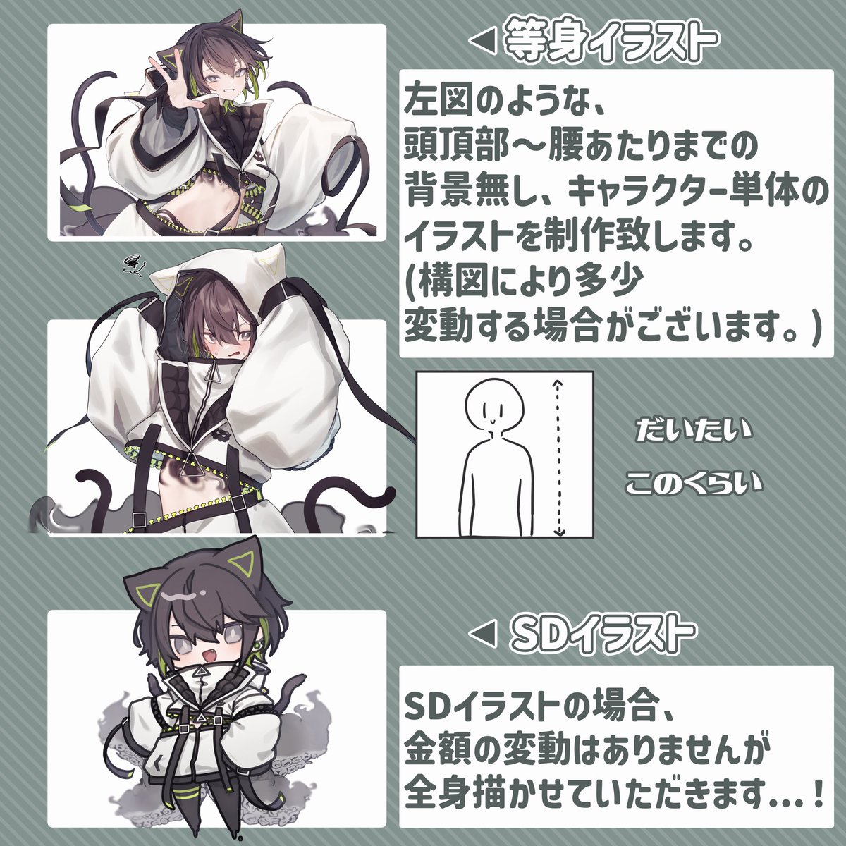 ⟬ お知らせ⟭ 明日6/1(木)20時頃、 SDイラスト(全身)のみですが 期間限定で設定金額を半額にしてskebでのご依頼を募集させていただきます! キャラクターデザインをこちらにお任せいただく形でもお受けできますので、もし良ければぜひ〜! skeb.jp/@BtitA82 画像は絵柄のサンプルです!