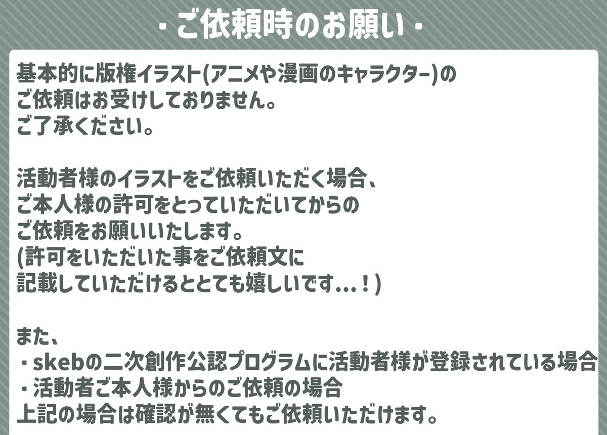 ⟬お知らせ⟭ 2月以降着手のスケブでの ご依頼を募集致します! skebをあんまり知らない!という方も、以下の画像をご確認いただけると幸いです…! 数件程リクエストいただけたら一旦閉じようと思いますので、ご都合良ければぜひお願い致します🙇♂️ skeb.jp/@BtitA82
