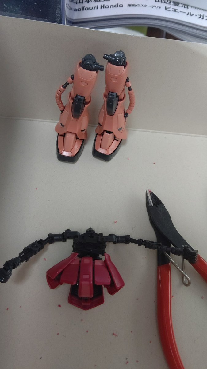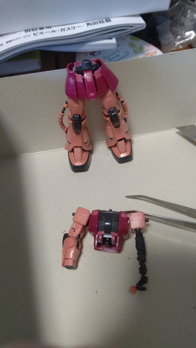 作って途中でパーツがポロポロ外れる。 こりゃー大変。 あと、肩幅詰めた もうちょっと詰めようか? 悩み中 #ガンプラ好きと繋がりたい #ガンプラの画像貼るとRTされると聞いて #ガンプラ女子