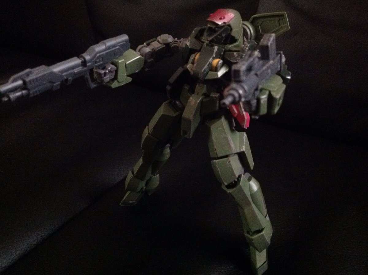 何ヶ月か前のグレイズ君の肩と角、背中パーツが消えちゃったんで、他のガンプラの余りパーツを付けて、汚しをした。…あれ?中々かっこええやん…。 #ガンプラ #ガンプラはどんな自由な発想で作ってもいいんだ