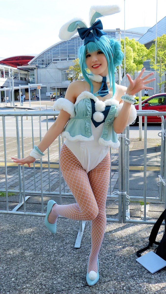 初音ミク 白うさぎver.[BiCute Bunnies Figureより] (彩菜さん @aya_sagepink・本人許可済み) 「白うさぎダヨー。」 #ニコニコ超会議コスプレ (4/29)