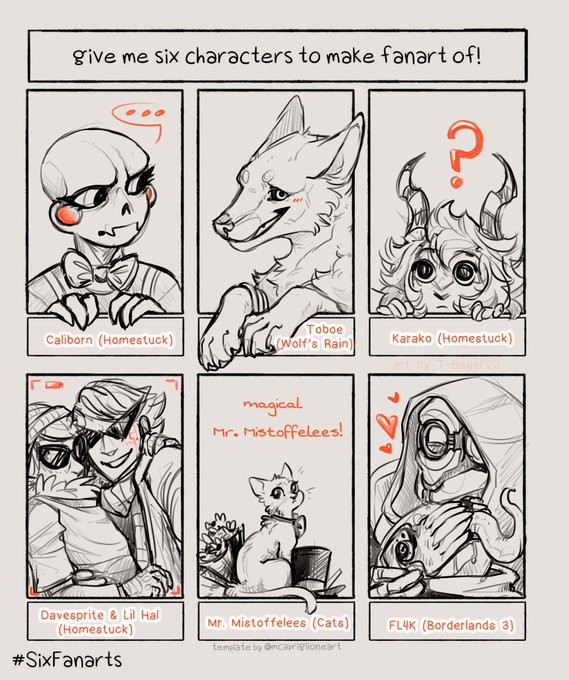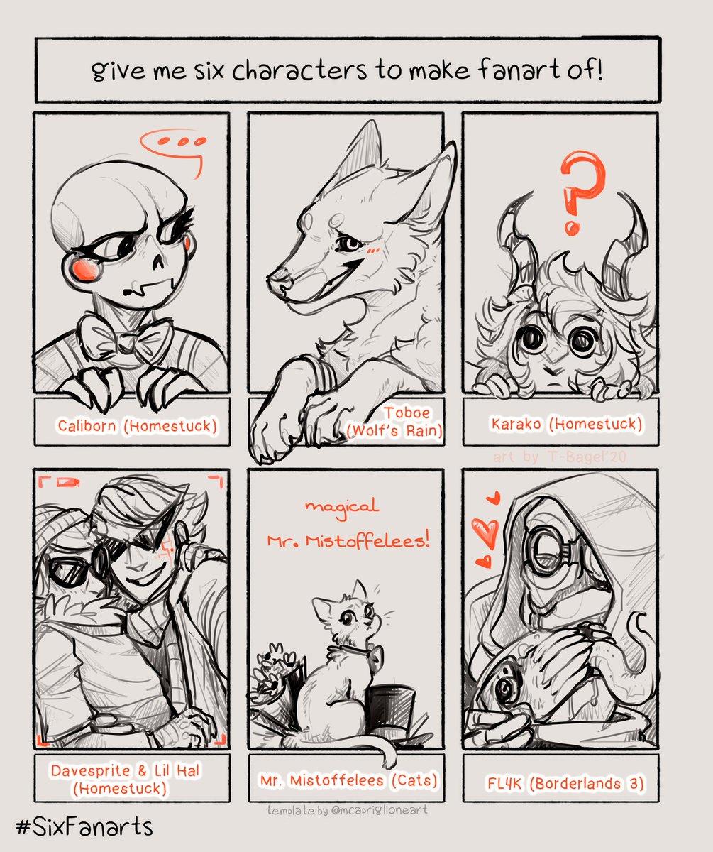 it's all in the sketches, because it's much more comfortable for me than trying to do a full-fledged thing, so... I did it uwu #SixFanarts #homestuck (#hiveswap) #wolfsrain #catsthemusical #Borderlands3