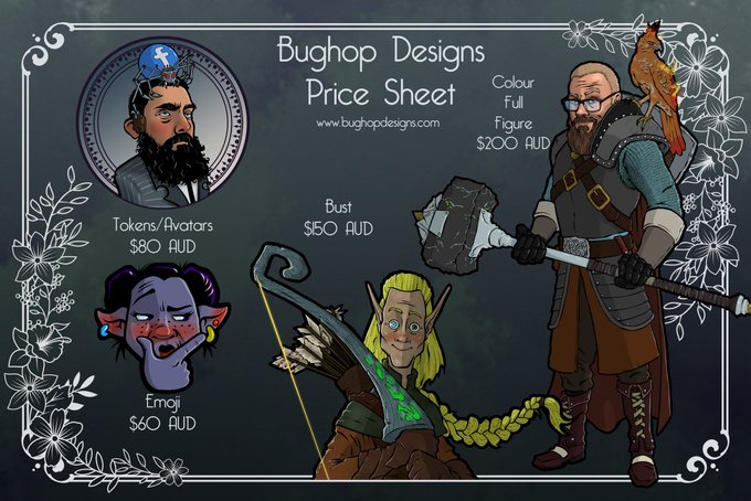 A New Year, a New Price List. Doubled my prices as we all slide ungracefully into our third year of apocalypses'. #commissionsopen #digitalart #dnd #dndart #ttrpg