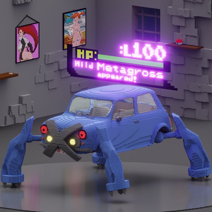 PokeCar #376 MetaGross It's not particularly fast, but it crushes you easily ! opensea.io/collection/pok… New collection #nftdrop #nftcollector #nftcollection #nftshill #metaverse #voxelart #opensea #anime #PokemonWorlds #Pikachu #PokemonScarletViolet #metagross #PokemonGO