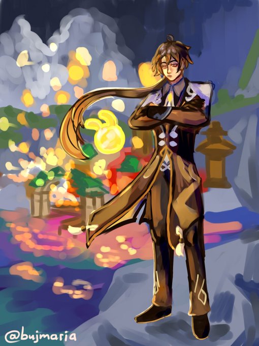 Чжун Ли на празднике Морских фонарей #genshinimpact #genshinimpactfanart #game #pc #digital #art #zhongli