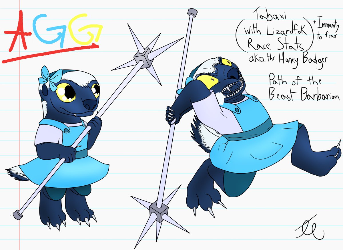 what happens when you switch a tabaxi's race stats with a lizerdfolk, and give it fear immunity? #drawing #illustration #DnD #dndart #dungeonsanddragons #characterdesign #honeybadger #tabaxi #barbarian