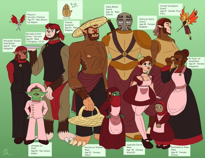 Finished up The employs for Thifs Estate! #drawing #illustration #DnD #dndart #dndart #slashers #horror #HorrorMovies #characterdesign #sketch #fasion #outfit #bugbear #elves #elf #Goblin #hobgoblin #gnome #icemephit #fairy #goliath
