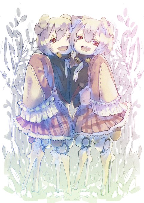 耳、メカ足、双子(?)など性癖のフルーツ盛りのようなキャラ シェルメナ! 足の資料が少ない!新刊で増えるかな! #メイドインアビス #シェルミ #メナエ