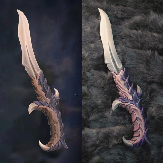Happy 1 year anniversary @PlayVALORANT ! I made this elderflame melee some time back and I heard you like side by sides so here it is!! All handcarved on foam. Now I just need a cosplay to go with it... #VALORANT #VALORANTfanart #valorantcosplay #cosplay
